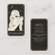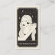 This business card features a tarot card style design in a black and cream colour palette. The illustration shows a hand holding a makeup brush applying makeup to a female face. The background has a moon and twinkling stars. This would be perfect for any makeup artist or beautician who prefers an alternative style business card and wants to make their business card memorable.