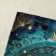 This celestial theme beach towel features lotus flowers, mandalas, moons, ethereal clouds, and other galaxy objects in various shades of teal, sage green, blue, and gold. Your monogram initial and name appear in gold and dark teal against a dusty sagey teal background, trimmed in gold. Theh colours and designs have a 70s boho vintage look. Make sure to type your initial and name in the Personalise box. If you like sacred geometry, metaphysical practices, or zen looking themes, this might be the right towel for you. This towel would also be great to take along with you to yoga class.