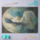 Exotic and Serene Deco Art Painting featuring a mermaid with full moon, in the style of Decorative art, illusory portrait, seascape.