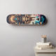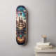 "Celestial Metropolis" is a skateboard design that envisions a grand steampunk city floating in the vastness of space. The cityscape is a marvel of Victorian architecture, seamlessly integrated with futuristic elements. Airships and mechanical gears soar among the spires and domes, connected by a network of pipes and steam outlets. The streets are bathed in the soft glow of gaslights and neon signs, creating a warm, inviting atmosphere amidst the cold expanse of the cosmos. In the background, the celestial tapestry unfolds with stars, planets, and a mesmerising nebula, adding depth and wonder to this otherworldly urban landscape. This design is a tribute to the power of imagination, where past and future coalesce in a vibrant, living city that transcends time and space