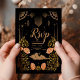 RSVP in celestial style with our Celestial Midnight Black Stars Wedding RSVP Card. This elegant card features a backdrop of deep black adorned with shimmering stars, evoking the enchanting beauty of a midnight sky.