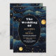 Celestial Midnight Blue Stars Moon Wedding Invitation