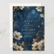 This enchanting celestial wedding design blends a deep midnight sky with glowing golden stars, soft moonlight, and richly detailed florals for a strikingly romantic aesthetic. The painted night sky creates a magical atmosphere, while the gold botanical accents add luxurious warmth and depth. Perfect for couples seeking an elegant celestial theme with a touch of whimsy and artful sophistication.