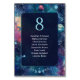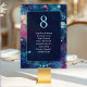 Bring cosmic elegance to your reception with this Celestial Midnight Moon Phases Wedding Seating Table Number. Set against a mesmerising blue and teal galaxy background, this design features delicate moon phases arching across the bottom, symbolising love through every phase of life. The ethereal celestial hues and starry accents create a dreamy, otherworldly atmosphere perfect for a stargazer, boho, or moonlit wedding theme. Both practical and poetic, this table number adds a mystical touch to your celebration while helping guests find their seats in style.