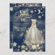Celestial moon and stars calligraphy sweet sixteen invitation
