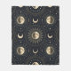 Elegant moon phase and celestial pattern blanket featuring crescent moons, stars, and radiant lunar details on a dark background. Ideal for astrology lovers, moon enthusiasts, spiritual seekers, stargazers, and fans of mystical celestial style.