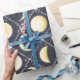 This ethereal repeating pattern features a celestial illustration of the moon’s enchanting cycle from new to full, each phase surrounded by a delicate diamond lattice of stars and vines. Set against a deep, midnight blue, this lunar design invites the wonder of the cosmos and the deep quiet of the night.