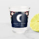 Celestial Moon Stars, Blue Night Sky, Watercolor Burgundy Marsala Blue Pink Floral Wedding Shot Glass