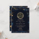 Create a magical first impression with this celestial wedding invitation featuring a deep navy blue background, elegant gold celestial accents, and a refined monogram design at the top. Inspired by the night sky, stars, and cosmic symbolism, this invitation brings a sense of romance, mystery, and timeless elegance.