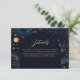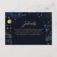 Complete your wedding stationery suite with this elegant celestial wedding details card, designed with a deep navy blue background, refined gold celestial accents, and a coordinating monogram on the back for a polished and cohesive look.