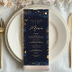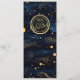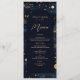 Elevate your reception tables with this elegant celestial wedding menu card, featuring a deep navy blue background, delicate gold celestial accents, and a coordinated monogram on the back for a refined, cohesive look.