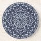 A lace-like concentric circle mandala in light blue with bright blue and gold star-like dots spangled among the layers makes for a fun, design that brings to mind a starry night sky.