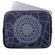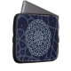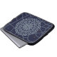 A lace-like concentric circle mandala in light blue with bright blue and gold star-like dots spangled among the layers makes for a fun, design that brings to mind a starry night sky.