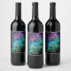 Celestial Night Sky Space Nebula Gold Star Wedding Wine Label