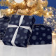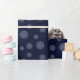 A lace-like concentric circle mandala in light blue with bright blue and gold star-like dots spangled among the layers makes for a fun, design that brings to mind a starry night sky.