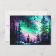 Embark on a celestial journey with our enchanting Northern Lights Wedding RSVP Card—an artistic portrayal that captures the serene beauty of forests, majestic mountains, and a star-studded night sky adorned by the captivating hues of the Aurora Borealis. This exquisite card offers recipients a glimpse into a breathtaking scene, tailored for enthusiasts of celestial wonders and the serene charm of the nighttime sky.