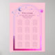 Celestial Pink Purple Sun Moon Stars Mystical Wedding Seating Chart Wedding Sign Instant Download Digital Printable Poster Prints features a pink and purple sun, moon and stars frame on pink background. Inside the frame is the text "Welcome" in elegant pink calligraphy script and your custom wedding reception seating chart information. Designed for you by ©2022 Evco Studio www.zazzle.com/store/evcostudio