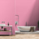 This fun wallpaper pattern features gold stars on a medium pink background. Add a feminine touch to not only walls but lots of other DIY home decor projects.