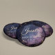 Add a touch of cosmic magic to your celebration with the Celestial Quinceañera personalised button. This charming accessory features a dreamy design of glittering stars, a crescent moon, and distant galaxies against a soft, cosmic backdrop. It's the perfect way to make a statement and add a personalised flourish to any outfit or party favour.