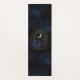 Simple cosmic graphic design Yoga Mat with gold faux glitter effect moon rising over hills and plains, all on an elegant astral navy blue background. Modern font typography monogram name is easy to personalise. Unite with the elements of the universe as you relax and meditate on this beautiful mat.