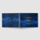 This celestial themed guest book features a beautiful background of deep blue space with stars and elegant gold lettering. Add your own details using the provided template in the customise menu. This is part of a celestial theme wedding suite that includes the invitation, envelope, and other essentials.