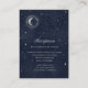 Our "Celestial Silver Wedding" collection features a beautiful crescent moon with silver stars in various designs on a velvet midnight blue background paired with elegant fonts. Easy to you to customise and you can choose among many items from this collection in our store.