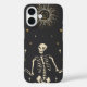 Illuminate your spooky side with this Celestial Skeleton Halloween Phone Case, where cosmic wonder meets gothic charm. This design showcases a vintage-style skeleton gazing up at a radiant sun with a human face, surrounded by glowing stars—all on a sleek dark background.