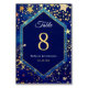 Celestial starry night blue wedding table number