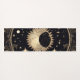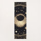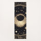 Double sided celestial sun moon and stars yoga mat. A mystical magical black and gold design. Add your own custom text, name, monogram or initials. Font style and colour are customisable.