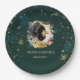 Celestial Sun And Moon Flowers Stars Green Paper Plate