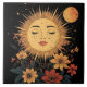 Bask in the warmth and wonder of this stunning celestial design! This illustration captures a harmonious balance of the cosmos and nature, featuring a radiant sun with a serene, feminine face surrounded by vibrant golden rays. Delicate wildflowers in warm shades of crimson red, burnt orange, and golden yellow bloom around the celestial sun, symbolising growth, vitality, and beauty. A soft, glowing orange moon floats nearby, adding a touch of mysticism to this ethereal scene. Set against a star-speckled night sky, this enchanting artwork blends astrology, spirituality, and boho-inspired aesthetics for dreamers and seekers alike.