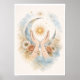 Modern celestial wall art featuring glowing sun and moon elements held by elegant hands, surrounded by soft watercolor textures and delicate floral details. Designed in a calming palette of beige, blue, and gold, this aesthetic piece blends spiritual and artistic vibes for a trendy, eye-catching look. Perfect for bedrooms, studios, or creative spaces.
