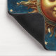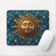 Amid a starry celestial background, the serene face of a stylized golden sun.
