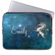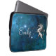 Beautiful vintage heraldry style unicorn illustration set on celestial skies background. Customise with name or other text in white script font.