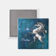Beautiful vintage heraldry style unicorn illustration set on celestial skies background. Customise with name or other text in white script font.