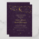 This design features foil elements (top starry design with moon) and the names of the bride and groom are also in shimmery foil. The other lettering is a pale, golden yellow. The background I created using a deep warm purple with layered of different sized stars.