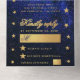 The background is a blue starry night sky. Along the borders (on both sides) there are gold stars, on the top there is a crescent moon (all of them are faux gold foil).