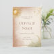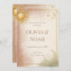 Set the tone for your magical day with this enchanting celestial wedding invitation. Featuring dreamy clouds in soft pink, warm beige, and sage green, adorned with golden suns, moons, stars, and delicate constellation patterns, all elegantly framed in gold. This ethereal design creates the perfect introduction to your cosmic love story. The romantic colour palette combined with luxurious gold celestial elements makes this invitation ideal for couples seeking a unique blend of bohemian elegance and mystical charm. Customise with your wedding details to create an unforgettable first impression. Perfect for evening ceremonies, outdoor weddings, or any celebration written in the stars.
