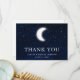 Celestial Wedding Thank You Card. Watercolor blue night sky with stars and the moon.