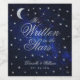 For a celestial wedding with the theme "It's Written in the Stars". The text is surrounded by the moon and star on a starry night blue background.