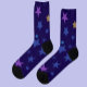 Step into cosmic comfort with the *Celestial Whispers Crew Socks*. Featuring scattered stars in gold, purple, dark blue, and light blue on a rich navy blue background, these socks are a dreamy blend of style and whimsy. Ideal for stargazers, dreamers, or anyone who wants to walk on the celestial side of life.