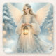 Celestial Winter Angel Lantern of Grace Square Paper Coaster