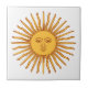 Add some sunshine - literally - to your tiled space with this stylish yellow and orange sunburst face drawing decorative ceramic tile. On a crisp white background. A celestial touch of elegance for kitchen counter, backsplash, bathroom, or other tiled area. Also makes a great trivet. Complements both modern and traditional décor styles. Let the sun shine in with this fun sun art tile!