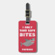 Celiac - No Wheat! with "no gluten" symbol". Customise 'no wheat' to say 'no gluten' or other information. I only take safe bites, shark food allergy alert tag. Helps alert others of a celiac disease. Customise with name. Attach to backpacks or safe snack bags. Designs by Lil Allergy Advocates www.lilallergyadvocates.com