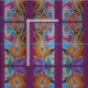 This fabric is covered with colourful cello watercolor art turned purple bordered kaleidoscope.