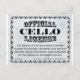 Official Cello License. There are many activities involving various equipment, such as operating an automobile, aeroplane, etc., that require specialised training and licenses. Making music is something that usually requires training: lessons, practice, and rehearsals. Shouldn't it be required of the prospective musicians that they receive a license to operate the equipment, i.e., their musical instrument?