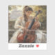 A young blonde woman in a flowing dress plays a cello gracefully, captured in soft, impressionistic brushstrokes evoking timeless elegance and musical passion.