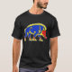 I give wanted to give this a 4 instead of a 5 because these Basic DARK T0shirts run unexpectedly SLIM or Narrow. Which is great if you do not have a potbelly, but I have a paunch. It isn't the shirt's fault that I've got a beer belly. The design and shirt itself is a quality cotton shirt. The color is more of a deep purple, but still a very pretty color. The Basic DARK T-shirts run a bit SLIMMER than the Basic Ts. The neck is a fraction narrower (or seems to be narrower) also. I'm a paunchy middle-aged woman and my neck is 12 inches (31cm) thick and the neckline fell about the same as in the photo of the man, and I had the desire to tug it a bit. So if you're a thick necked man or like loose shirts, be aware these are slimmer shirts. Once I get rid of my lockdown paunch it'll look great. The shirt washed well in cold water with no apparent bleeding. We don't have a dryer, so it hung dry. Did not shrink. Love the colors and the design. The design looks smaller on my shirt than it does on the model on-line. But still, it looks good on the shirt. The printing looks as it does on the model, just the size seems fractionally smaller. Washed garment in cold water, hung dry and design appeared unaffected.