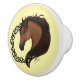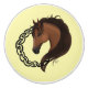 A brown horse profile with tribal celtic knot work in a circle with a backdrop of yellow.