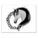A brown horse side portrait profile with tribal celtic knot work in a circle in a backdrop of yellow